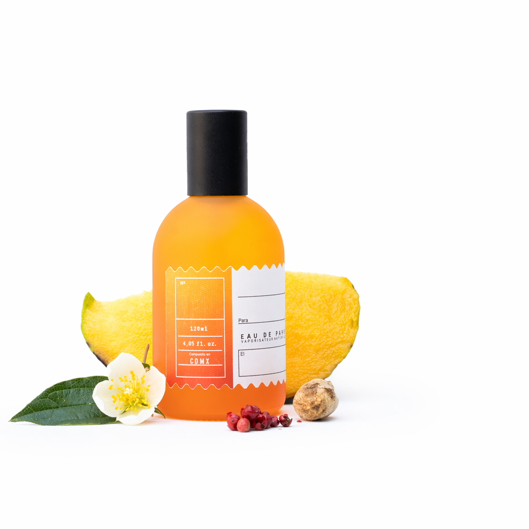 Inspirado en esta fruta icónica llena de energía y vida. El aroma captura su jugosidad luminosa y su esencia exótica. Las notas picantes recuerdan el ritual mexicano del mango con chile: dulce, vibrante y adictivo.