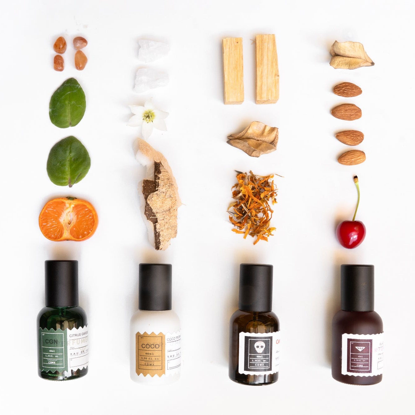 La colección incluye 4 perfumes unisex de 40 ml: CITRUS, COCO, COPAL y CHERRY. Creados para capturar la esencia única de su temporada, que se adaptan perfectamente a tu estilo de vida y a los cambios de la naturaleza.